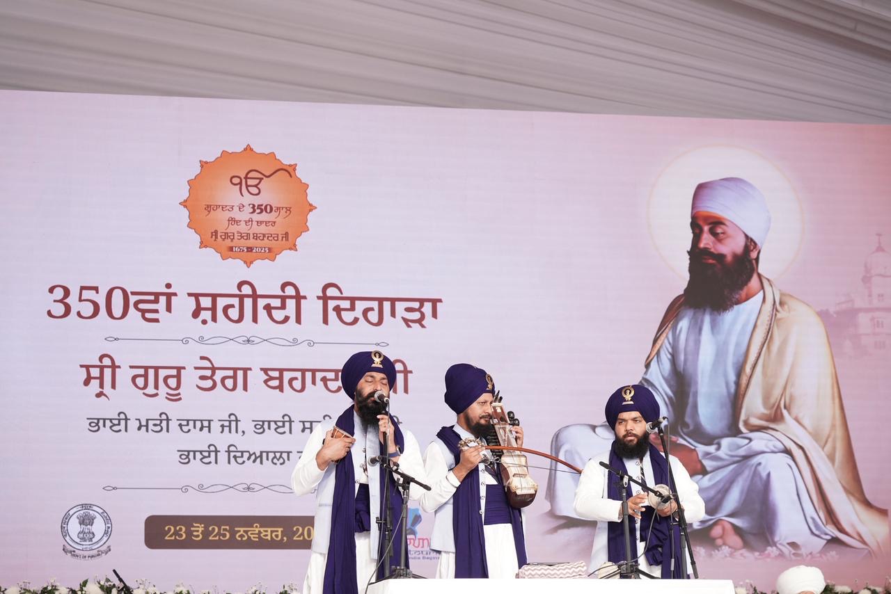 ਸ੍ਰੀ ਗੁਰੂ ਤੇਗ ਬਹਾਦਰ ਜੀ, ਭਾਈ ਮਤੀ ਦਾਸ ਜੀ, ਭਾਈ ਸਤੀ ਦਾਸ ਜੀ ਅਤੇ ਭਾਈ ਦਿਆਲਾ ਜੀ ਦੇ 350ਵੇਂ ਸ਼ਹੀਦੀ ਦਿਹਾੜੇ ਨੂੰ ਸਮਰਪਿਤ ਸ੍ਰੀ ਅਨੰਦਪੁਰ ਸਾਹਿਬ ਵਿਖੇ ਪੰਜਾਬ ਸਰਕਾਰ ਵੱਲੋਂ ਕਰਵਾਏ ਜਾ ਰਹੇ ਸਮਾਗਮਾਂ ਦੀ ਲੜੀ ਤਹਿਤ ਅੱਜ ਬਾਬਾ ਬੁੱਢਾ ਦਲ ਛਾਉਣੀ ਦੇ ਮੁੱਖ ਪੰਡਾਲ਼ ਵਿਚ ਸ੍ਰੀ ਗੁਰੂ ਗ੍ਰੰਥ ਸਾਹਿਬ ਜੀ ਦੀ ਹਜ਼ੂਰੀ ਵਿਚ ਗੁਰੂ ਸਾਹਿਬ ਦੇ ਜੀਵਨ ਤੇ ਸਿੱਖਿਆਵਾਂ ‘ਤੇ ਆਧਾਰਿਤ ਵਿਸ਼ੇਸ਼ ਕਵੀ, ਢਾਡੀ ਤੇ ਕਵੀਸ਼ਰ ਦਰਬਾਰ ਸਜਾਏ ਗਏ। ਇਸ ਮੌਕੇ ਉੱਘੇ ਕਵੀਆਂ, ਢਾਡੀਆਂ ਤੇ ਕਵੀਸ਼ਰਾਂ ਨੇ ਸੰਗਤਾਂ ਨੂੰ ਨਿਹਾਲ ਕੀਤਾ।