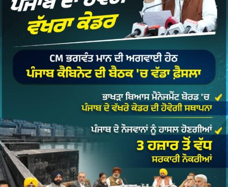 ਚੰਡੀਗੜ੍ਹ, 19 ਨਵੰਬਰ, 2025 ਪੰਜਾਬ ਸਰਕਾਰ ਨੇ ਇੱਕ ਇਤਿਹਾਸਕ ਫੈਸਲਾ ਲਿਆ ਹੈ ਜੋ ਨਾ ਸਿਰਫ਼ ਸੂਬੇ ਦੇ ਨੌਜਵਾਨਾਂ ਲਈ ਰੁਜ਼ਗਾਰ ਦੇ ਮਹੱਤਵਪੂਰਨ ਮੌਕੇ ਖੋਲ੍ਹਦਾ ਹੈ ਬਲਕਿ ਪੰਜਾਬ ਦੇ ਅਧਿਕਾਰਾਂ ਨੂੰ ਵੀ ਮਜ਼ਬੂਤੀ ਨਾਲ ਸਥਾਪਿਤ ਕਰਦਾ ਹੈ। ਮੁੱਖ ਮੰਤਰੀ ਭਗਵੰਤ ਮਾਨ ਦੀ ਪ੍ਰਧਾਨਗੀ ਹੇਠ ਹੋਈ ਕੈਬਨਿਟ ਮੀਟਿੰਗ ਨੇ ਭਾਖੜਾ ਬਿਆਸ ਪ੍ਰਬੰਧਨ ਬੋਰਡ (ਬੀਬੀਐਮਬੀ) ਲਈ ਇੱਕ ਵੱਖਰਾ […]