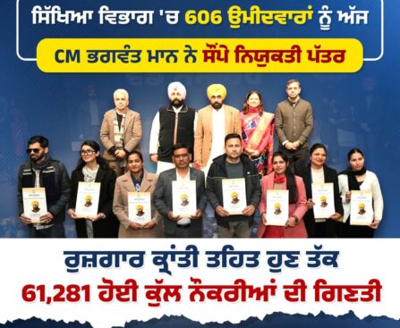 ਮੁੱਖ ਮੰਤਰੀ ਭਗਵੰਤ ਸਿੰਘ ਮਾਨ ਨੇ ਸਿੱਖਿਆ ਵਿਭਾਗ ਦੇ 606 ਉਮੀਦਵਾਰਾਂ ਨੂੰ ਨਿਯੁਕਤੀ ਪੱਤਰ ਸੌਂਪੇ ਪਿਛਲੀਆਂ ਸਰਕਾਰਾਂ ਨੇ ਆਪਣੇ ਪੁੱਤ-ਭਤੀਜਿਆਂ ਅਤੇ ਚਹੇਤਿਆਂ ਨੂੰ ਨੌਕਰੀਆਂ ਵੰਡੀਆਂ ਅਤੇ ਅਸੀਂ ਕਾਬਲ ਤੇ ਹੋਣਹਾਰ ਨੌਜਵਾਨਾਂ ਨੂੰ ਨੌਕਰੀ ਦਿੱਤੀ-ਮੁੱਖ ਮੰਤਰੀ ਭਗਵੰਤ ਸਿੰਘ ਮਾਨ ਸਰਕਾਰੀ ਸਕੂਲਾਂ ਦੇ ਪੜ੍ਹਦੇ ਵਿਸ਼ੇਸ਼ ਲੋੜਾਂ ਵਾਲੇ 48000 ਬੱਚਿਆਂ ਲਈ ਪਹਿਲੀ ਵਾਰ ਅਧਿਆਪਕਾਂ ਦਾ ਵੱਖਰਾ ਕਾਡਰ ਬਣਾਇਆ, […]